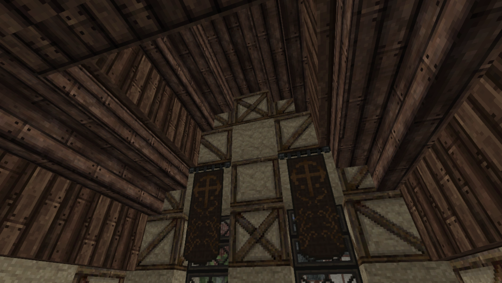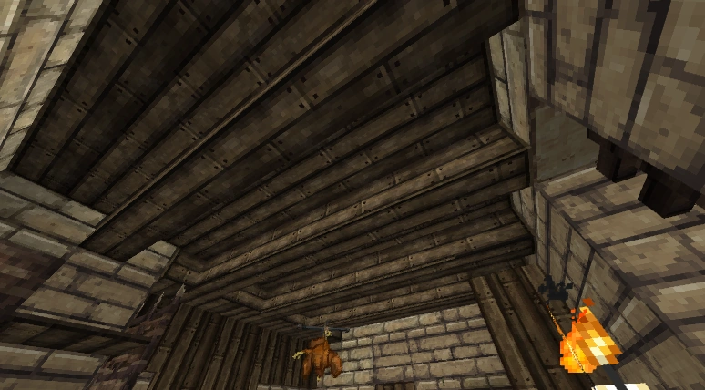 A sub-par interior; poor use of space, no rafters, poor block usage (from an old build)