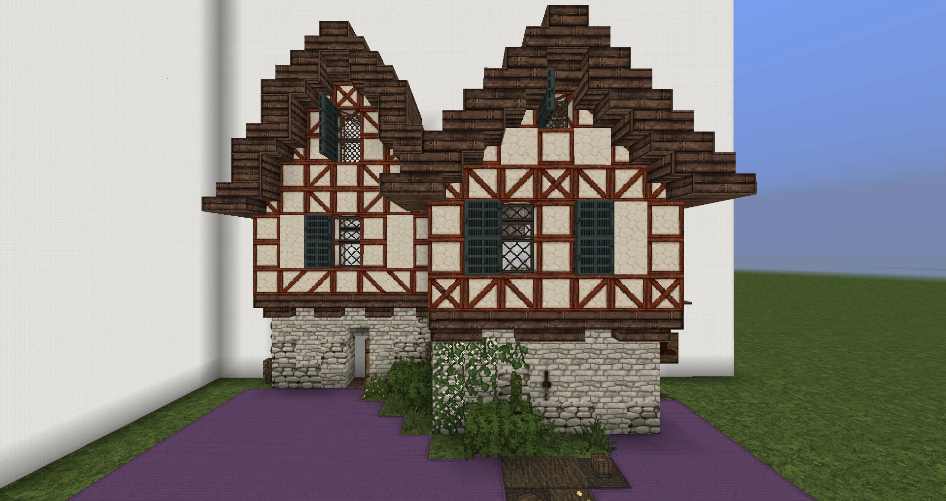 The first thing done before beginning a build is planning the structural frame. Often, this is done by constructing a wool frame that makes an outline. By doing this you get a general idea of the size of the build as well as a rough visualization of the interiors. Doing so will help prevent creating short or cramped rooms (2 block tall rooms, for example).